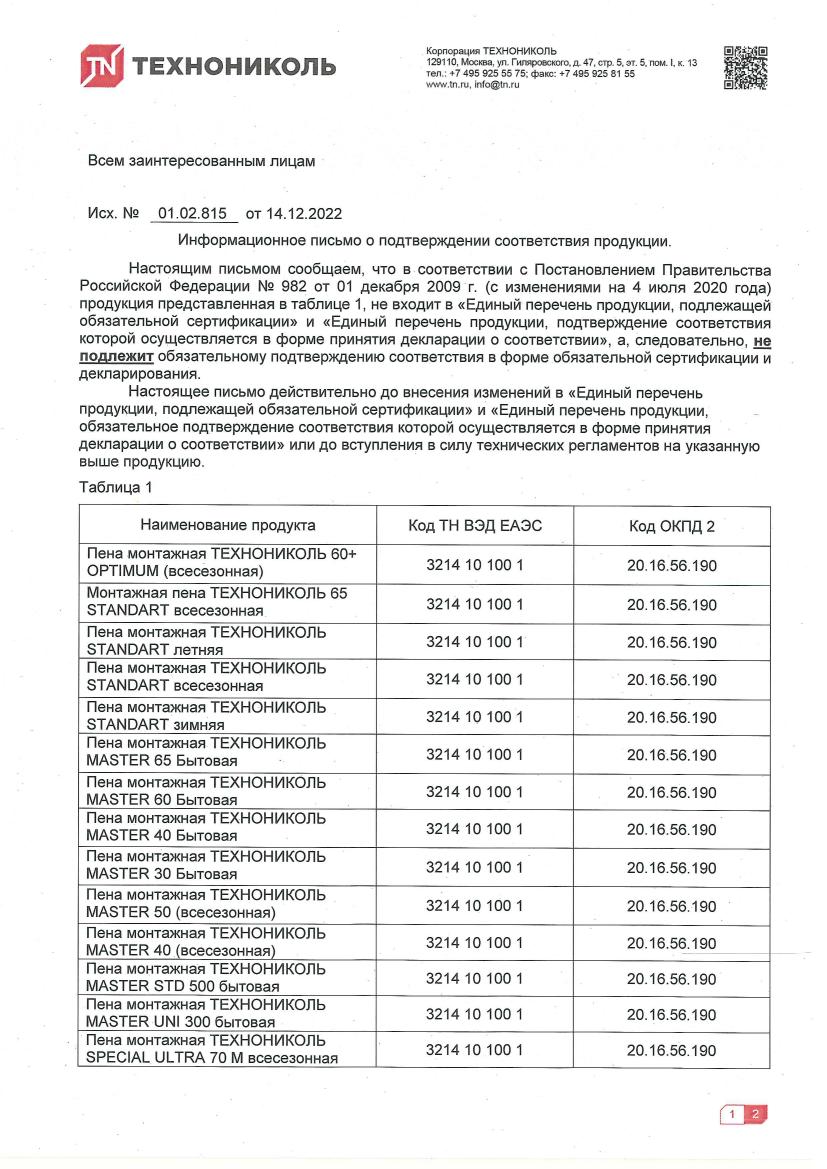 Пена монтажная бытовая ТЕХНОНИКОЛЬ 65 MASTER