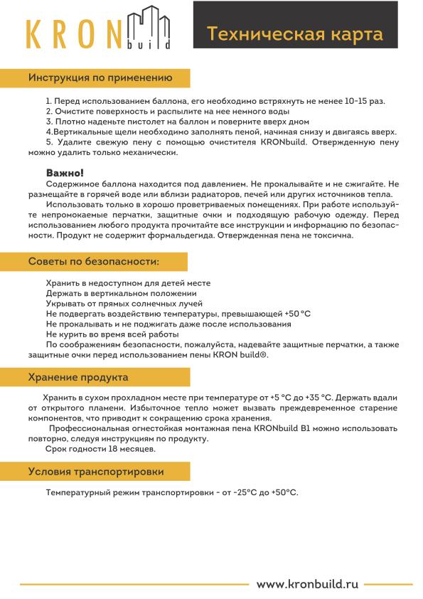 Пена монтажная профессиональная KRONbuild огнестойкая В1