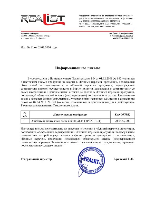Очиститель монтажной пены REALIST 500мл