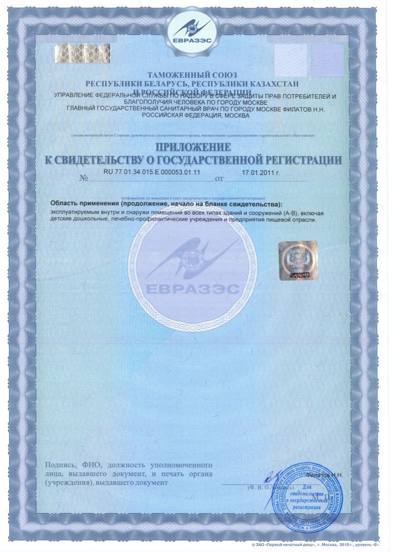 Сертифицирован для применения в детских и лечебных учреждениях