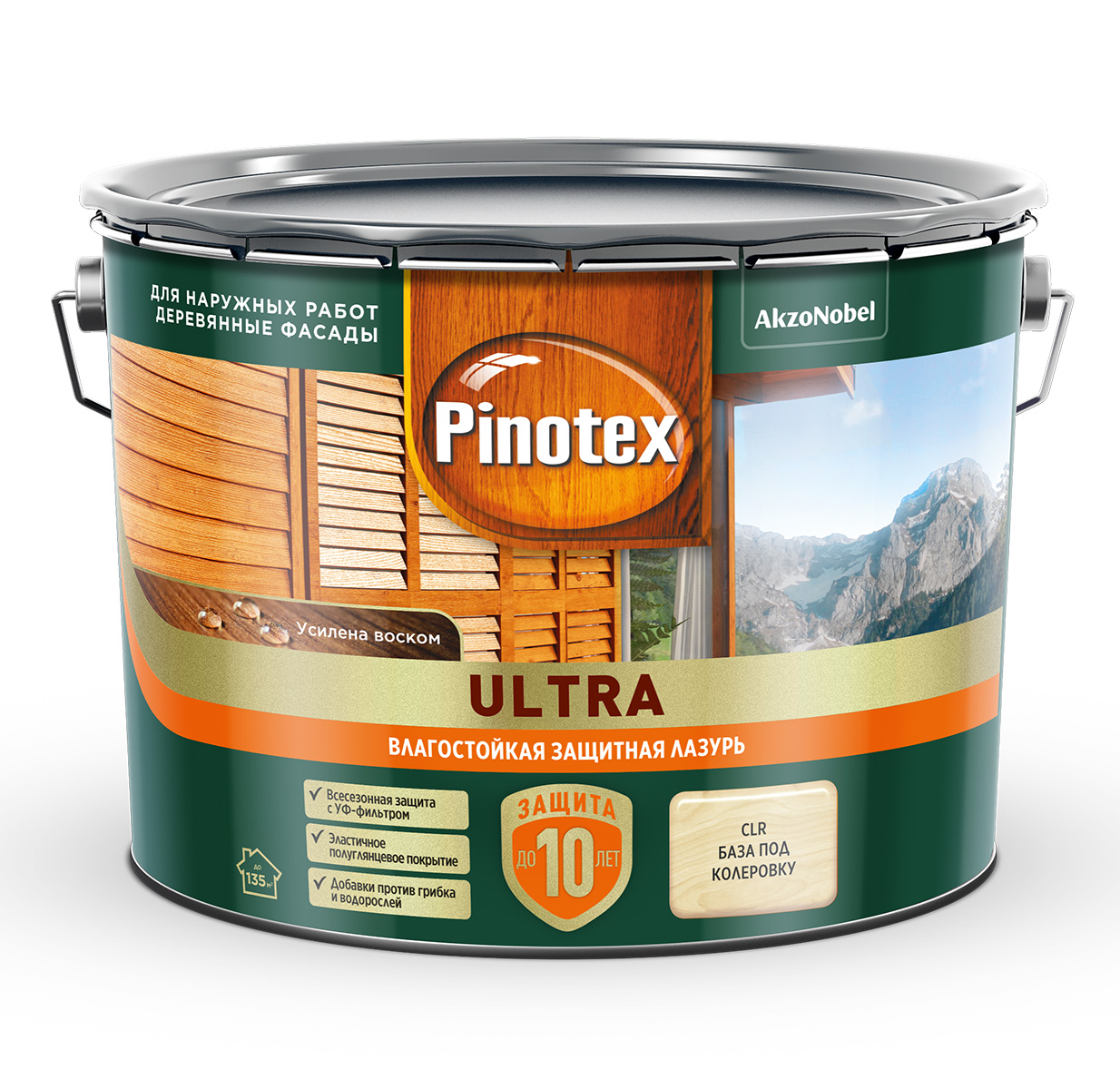 Лазурь влагостойкая PINOTEX-ULTRA база под колеровку CLR 9л