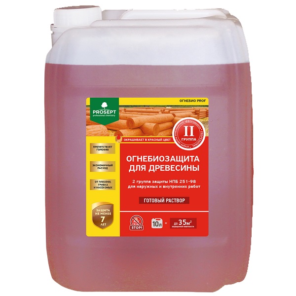 Состав огнебиозащитный Просепт ОГНЕБИО PROF 2-я группа гот состав кр-кор, 10л