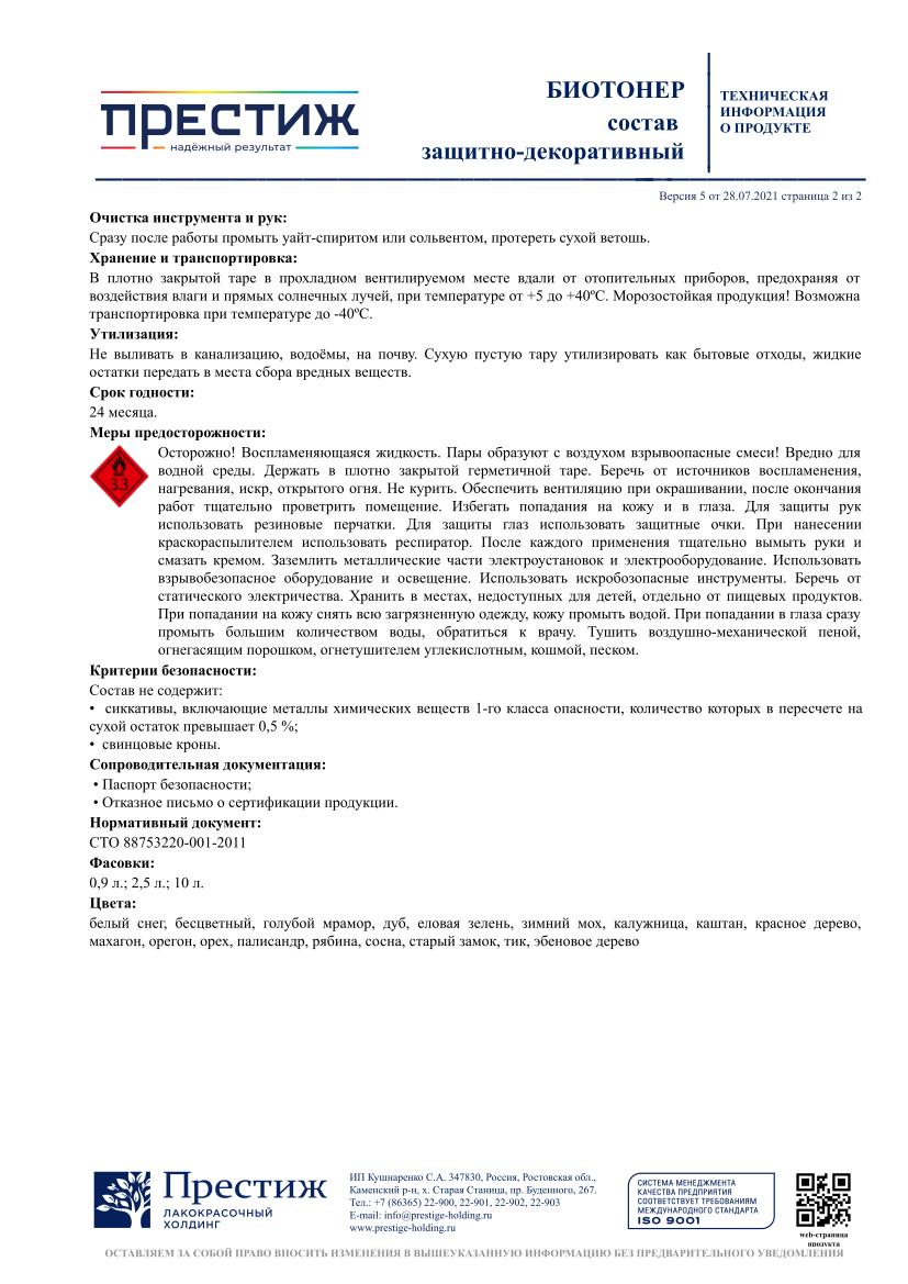 Биотонер ПРЕСТИЖ орех 2,5 л