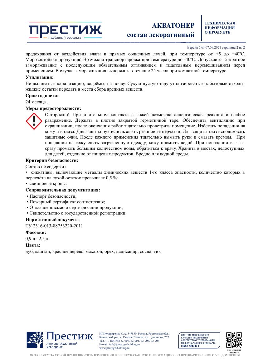 Акватонер ПРЕСТИЖ дуб 2,5 л