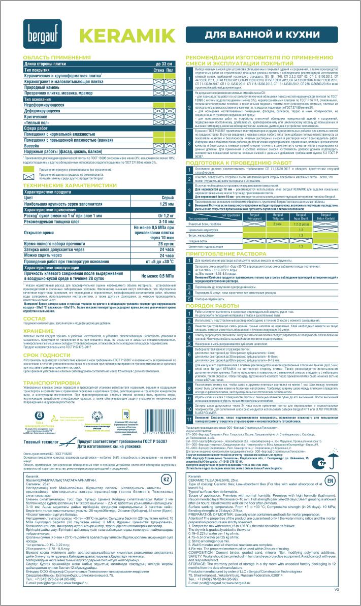 Бергауф Клей для керамической плитки Keramik 25кг