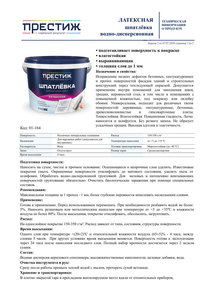 Исправление мелких дефектов бетонных, оштукатуренных и прочих поверхностей фасадов зданий и строительных конструкций перед последующей окраской. Допускается применение внутри помещений для заполнения швов, трещин, неровностей стен, в том числе в помещениях с повышенной влажностью, под покраску или оклейку обоями. Универсальная, подходит для различных типов поверхностей: деревянные, оштукатуренные, бетонные, древесноволокнистые и гипсокартонные плиты. Тонкослойная. Влагостойкая. Повышенная гладкость. Легко наносится и шлифуется. Без резкого запаха. Не образует усадочных трещин. Высокая адгезия и эластичность.