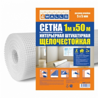 Сетка строительная интерьерная 4WALLS (5х5) 1х50пм штукатурная белая