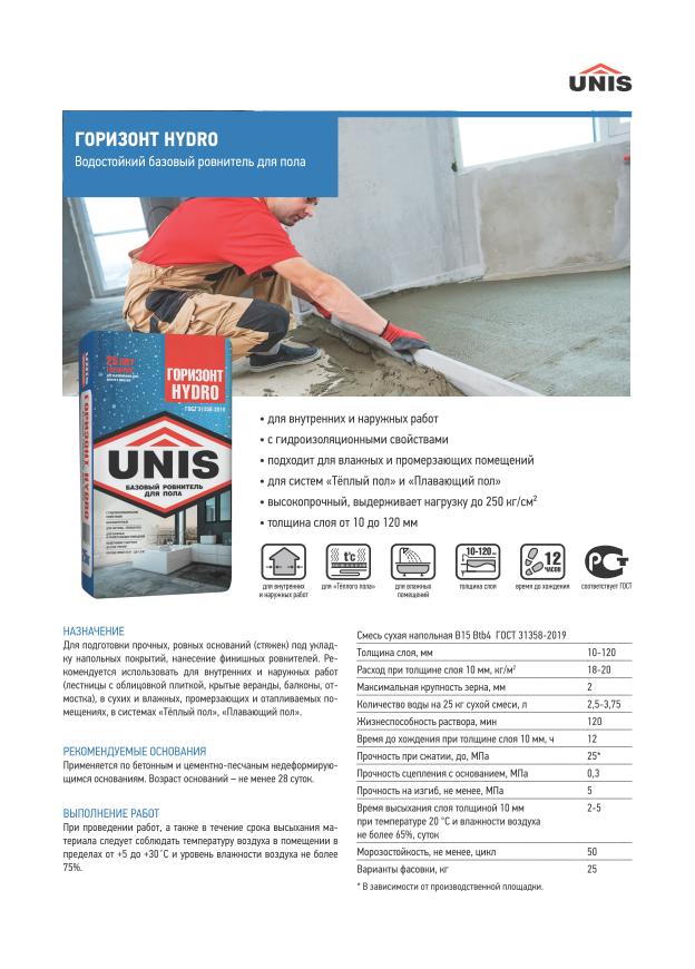Юнис Горизонт ровнитель для пола HIDRO 25 кг